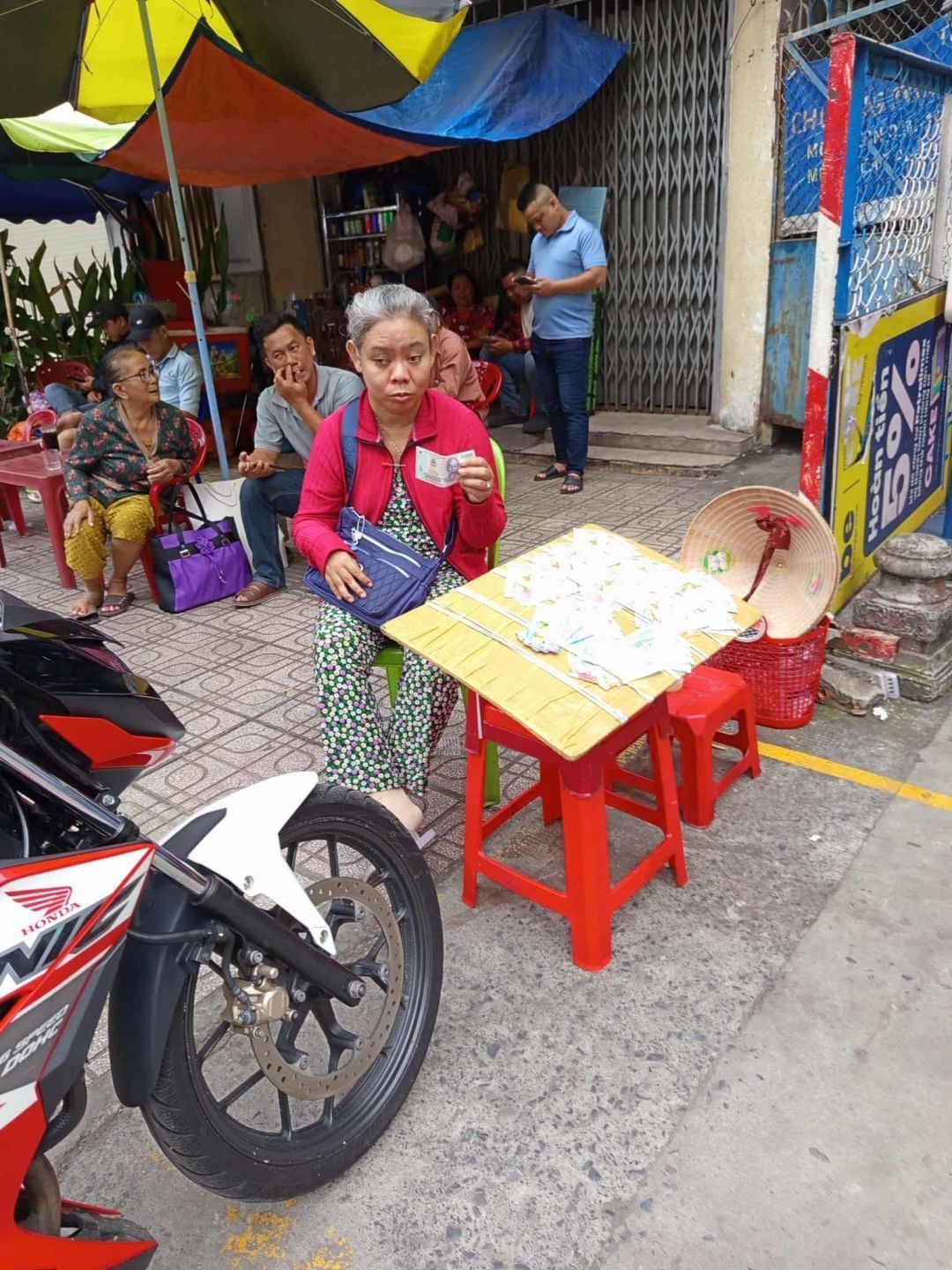 Sáng nay 6x ghé lại điểm bán vé số của mẹ con chị Thương để trao tiền CMTX tháng 6/2025 từ Michele_du và Gia đình cũng như trao thùng xúc xích của Quán cơm 2000₫-SG.