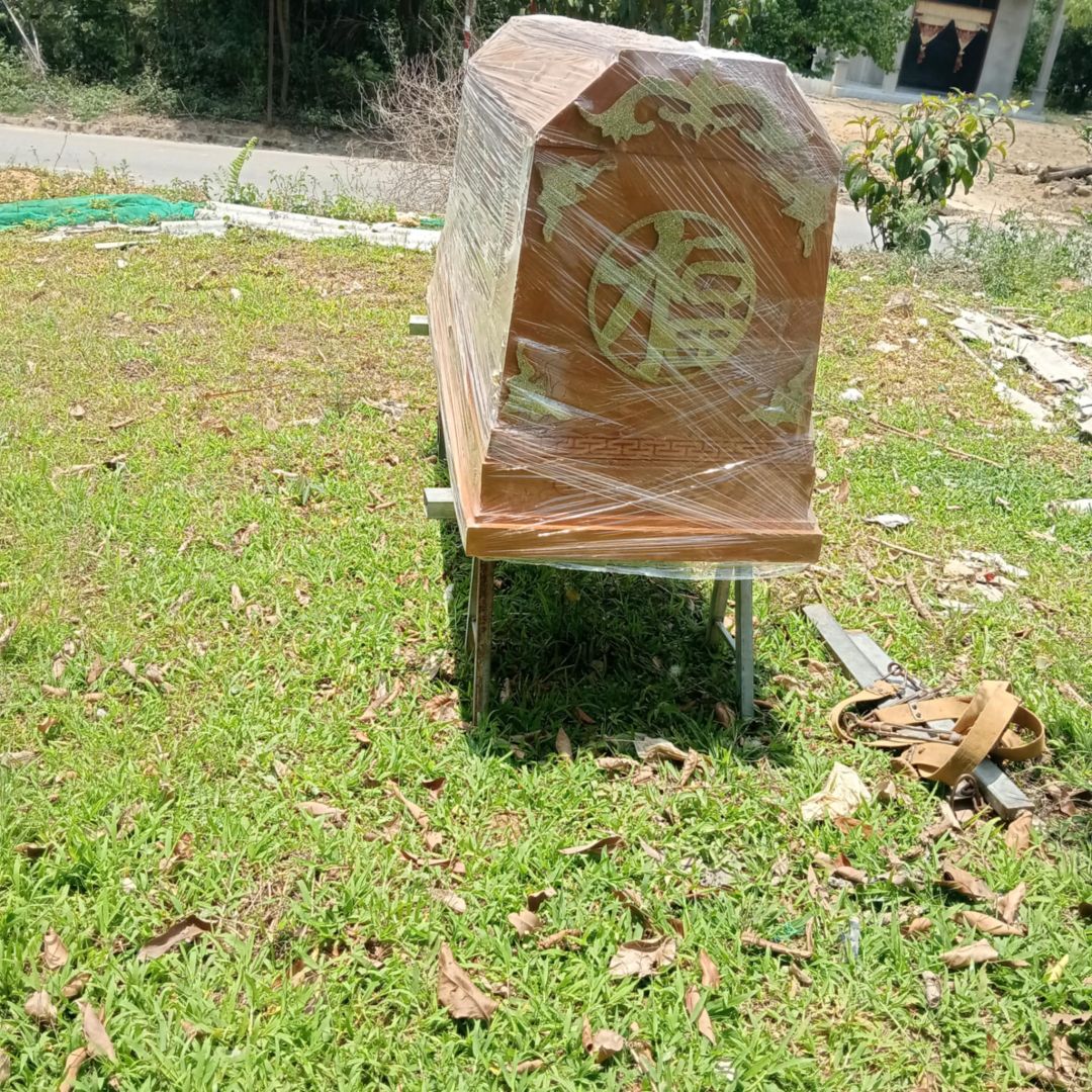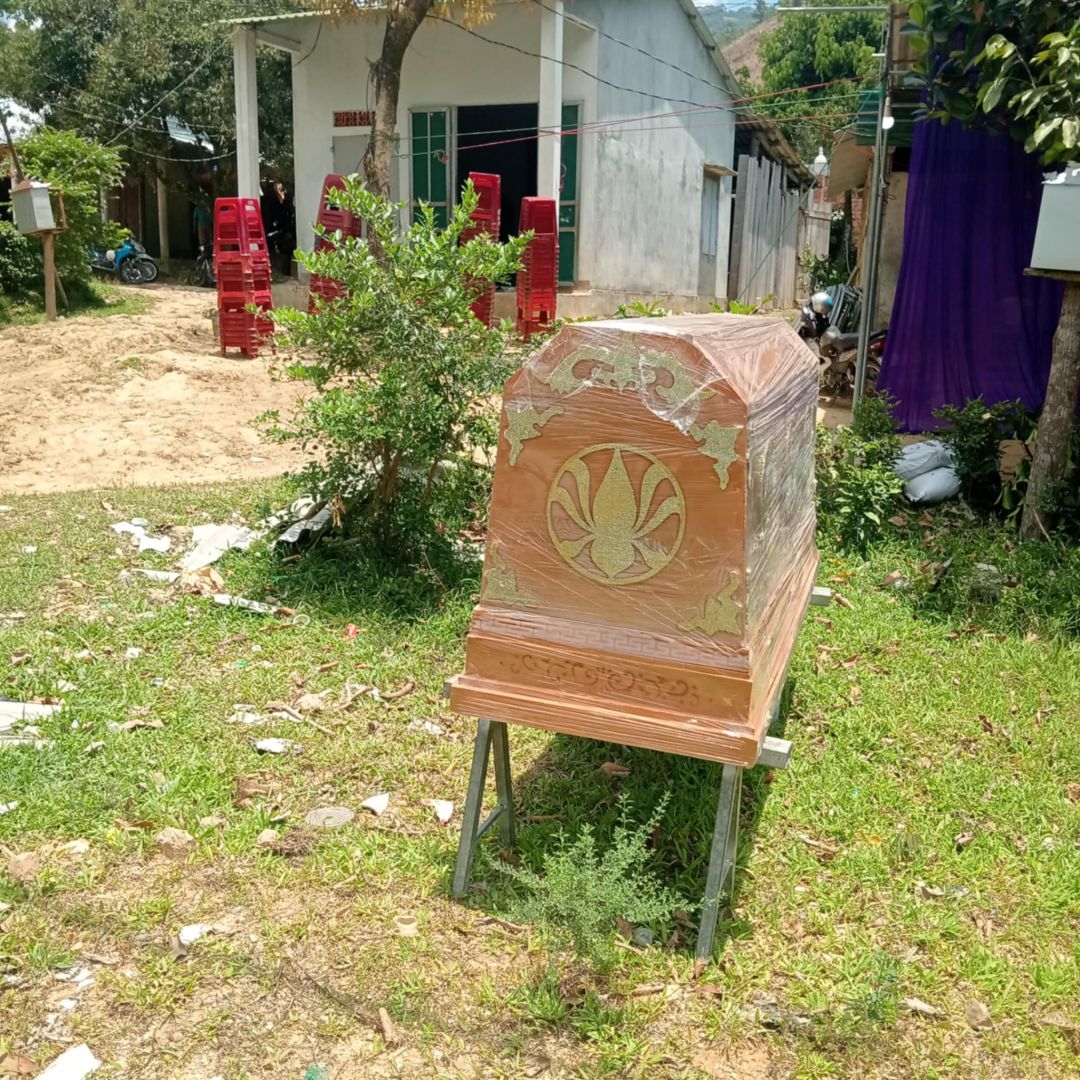 Hiện tại quan tài đang để trước nhà, và Bác Hùng vẫn còn để trong nhà chưa đưa vào quan tài được.
