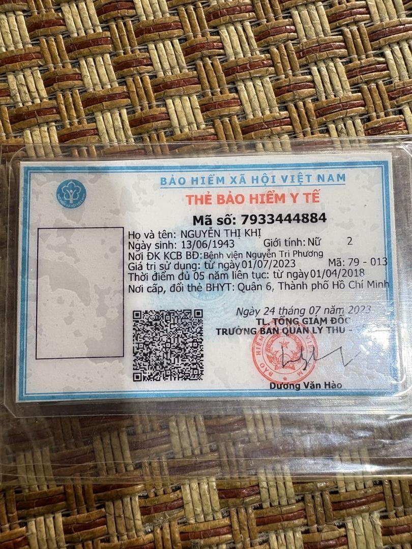 Cụ Nguyễn Thị Khị sinh năm 1943, năm nay 82 tuổi, cụ không đi được phải lết với chiếc ghế nhựa nhỏ, cụ mang nhiều bệnh trong người, hàng tháng đi khám ở bv Nguyễn Tri Phương, có BHYT. Cũng may là có cô Xuân- bạn của em gái cụ- hàng tháng đến đưa cụ đi khám, lấy thuốc và chở cụ về.