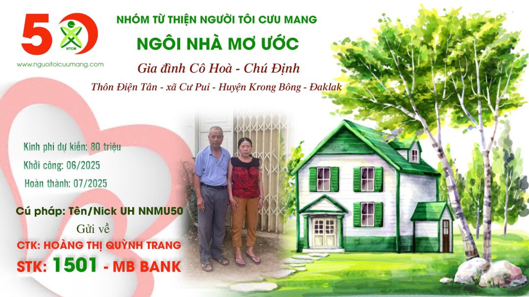 Vì vậy rất mong Đại GĐ NTCM quan tâm xem xét, hỗ trợ được NNMU cho cô Hoà và chú Định để gia đình có thêm một điểm tựa cho tuổi xế chiều, các con các cháu có nơi ăn chốn học đúng nghĩa của một mái nhà.
