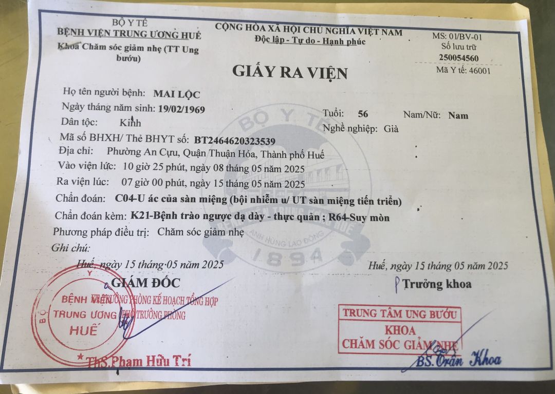 Ông đột quỵ hơn 2 năm nay nằm liệt giường, quá trình liệt giường lại phát hiện K vòm họng.