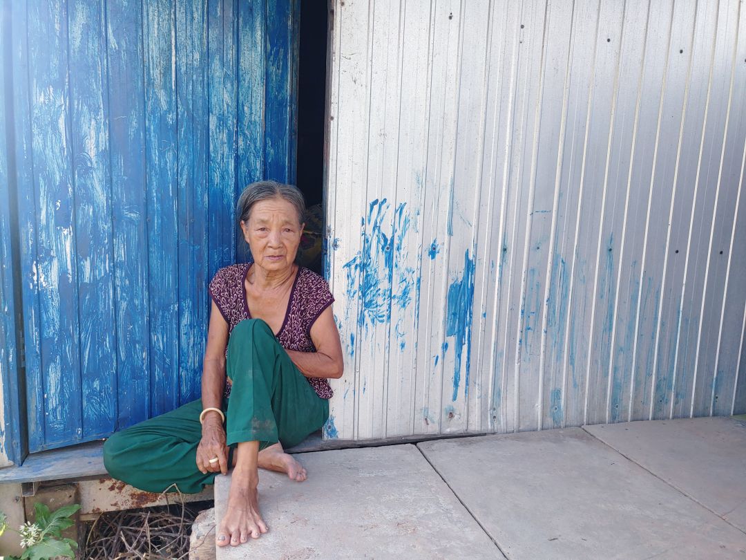 Bà đang sống một mình, vì lớn tuổi nên bà không còn minh mẫn nữa, căn nhà trước đây bà ở đã bị bà bất cẩn làm cháy.