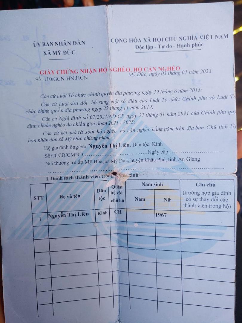 Cô thuộc diện hộ nghèo trong địa bàn.