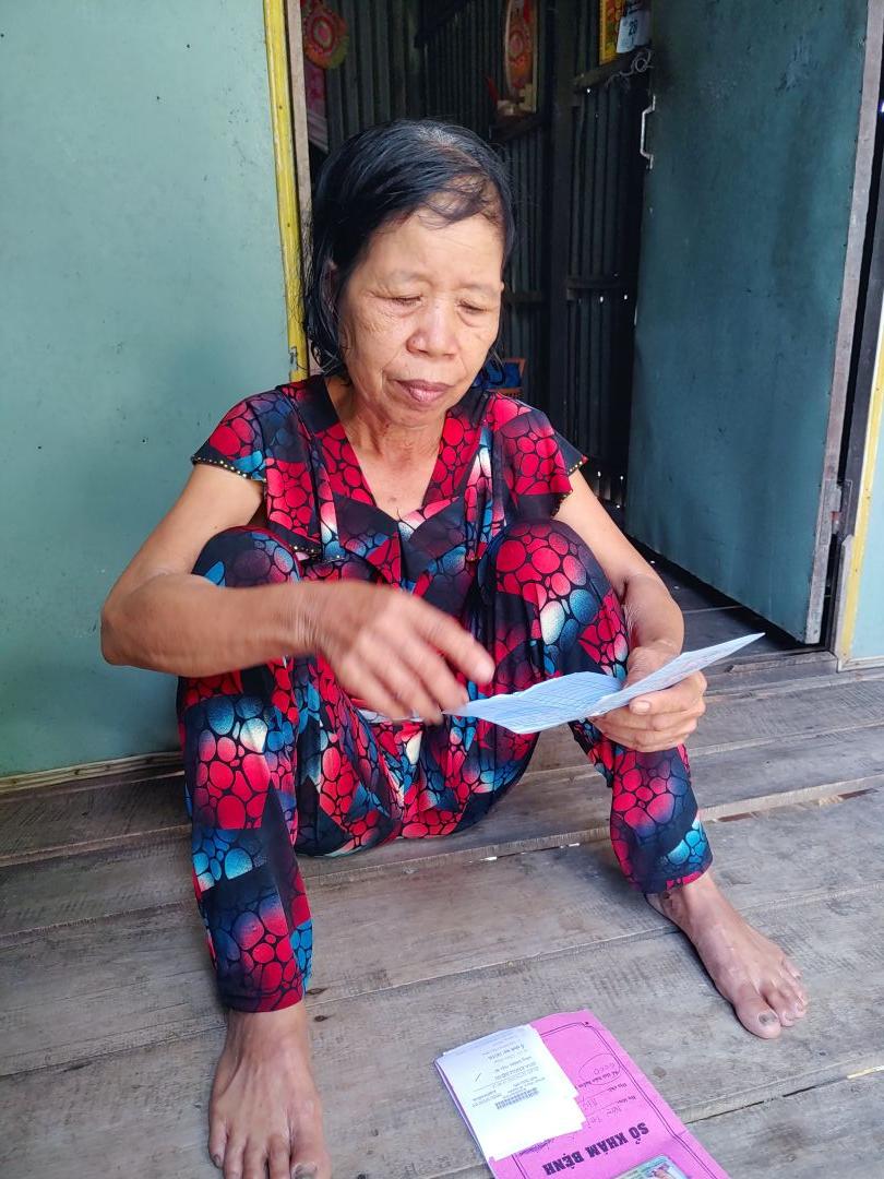 Hàng ngày, cô đi cắt rau muống, bắt ốc giao khi có người đặt mua, hôm nào có đi làm thì kiếm được tầm 30 - 50 nghìn đồng, hôm nào sức khỏe không ổn hoặc không có ai đặt thì cũng không có đồng nào.
