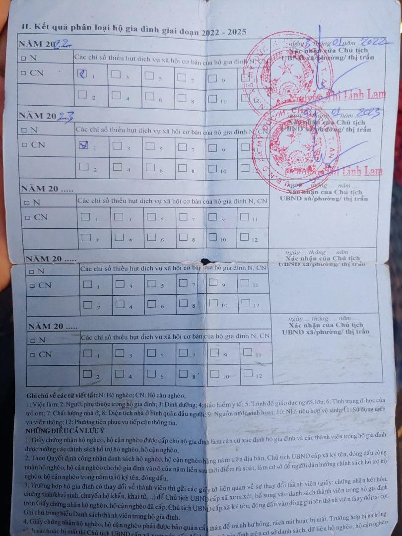 Cô thuộc diện hộ nghèo trong địa bàn.