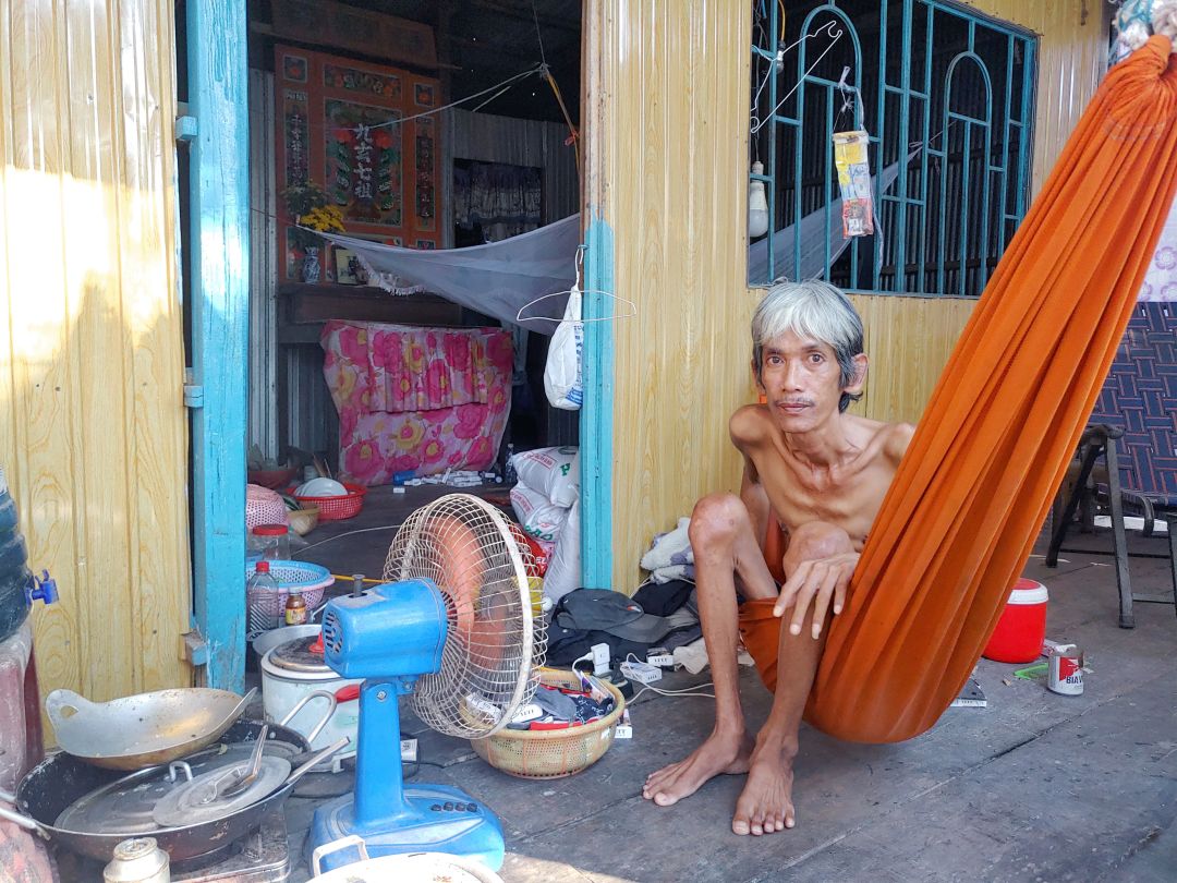 Anh bị bệnh lao phổi hơn 1 năm nay, lúc còn khỏe thì anh đi làm thuê, ai thuê gì làm nấy, từ lúc bệnh đến nay thì sức khỏe không đảm bảo để đi làm.