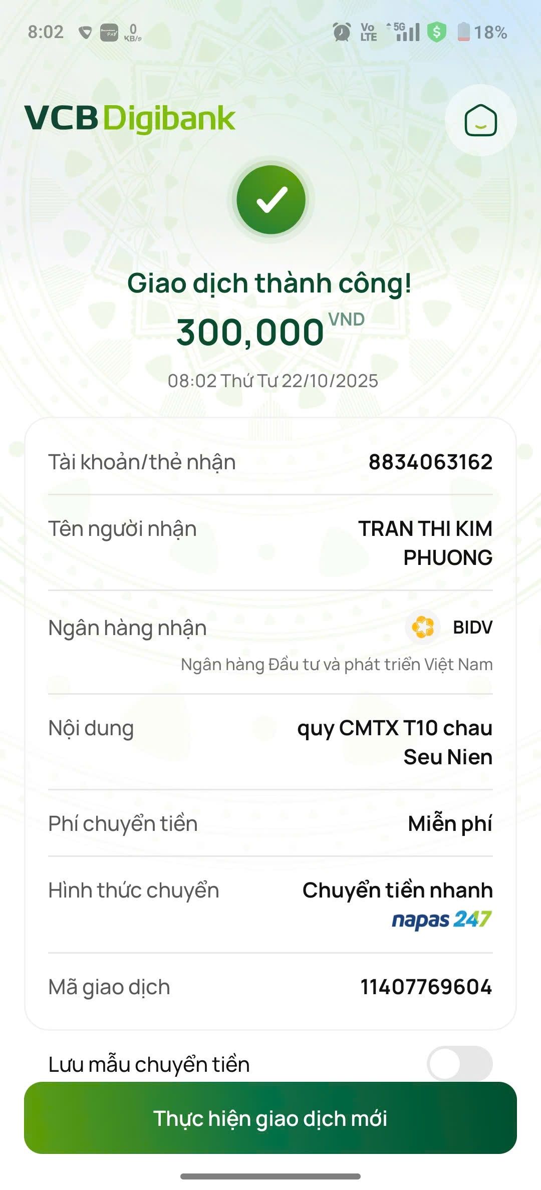 Cháu xin cập nhật thêm 300.000vnd của bà Phượng vào tháng 10/2025 từ quỹ cmtx ạ !