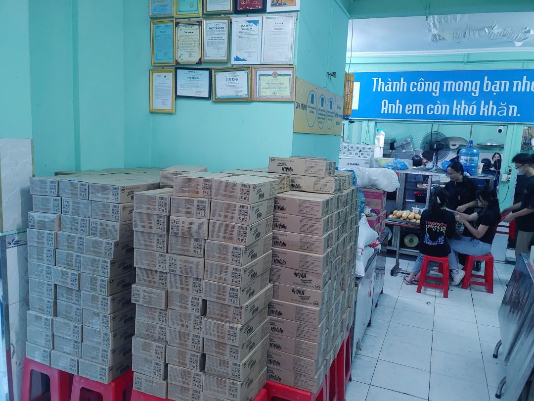 Còn lại khoảng hơn 20 thùng, sẽ dùng gửi cho bà con tại quán cơm tiếp tục.