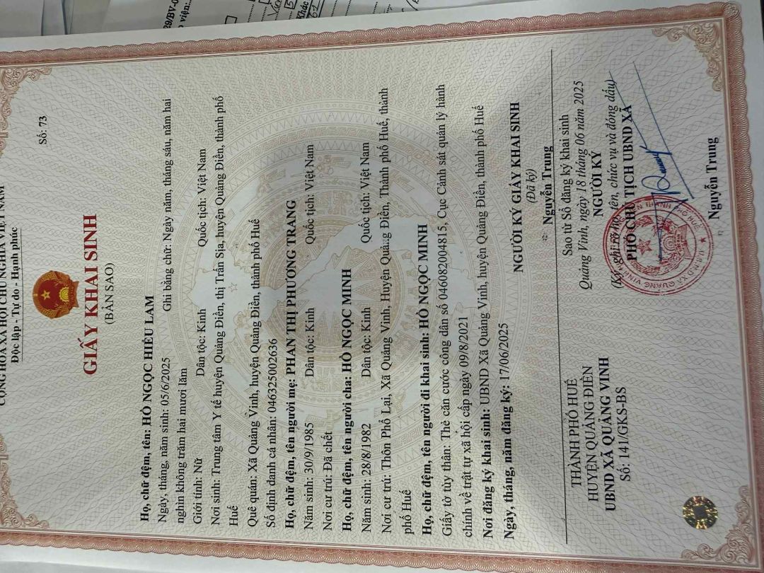 bé Hồ Ngọc Hiểu Lam.  Vừa mới sinh ra, cháu đã không còn mẹ bên cạnh - sau 2 ngày sinh, mẹ cháu chị Phan Thị Phương Trang đã ra đi vì co giật và đột tử.