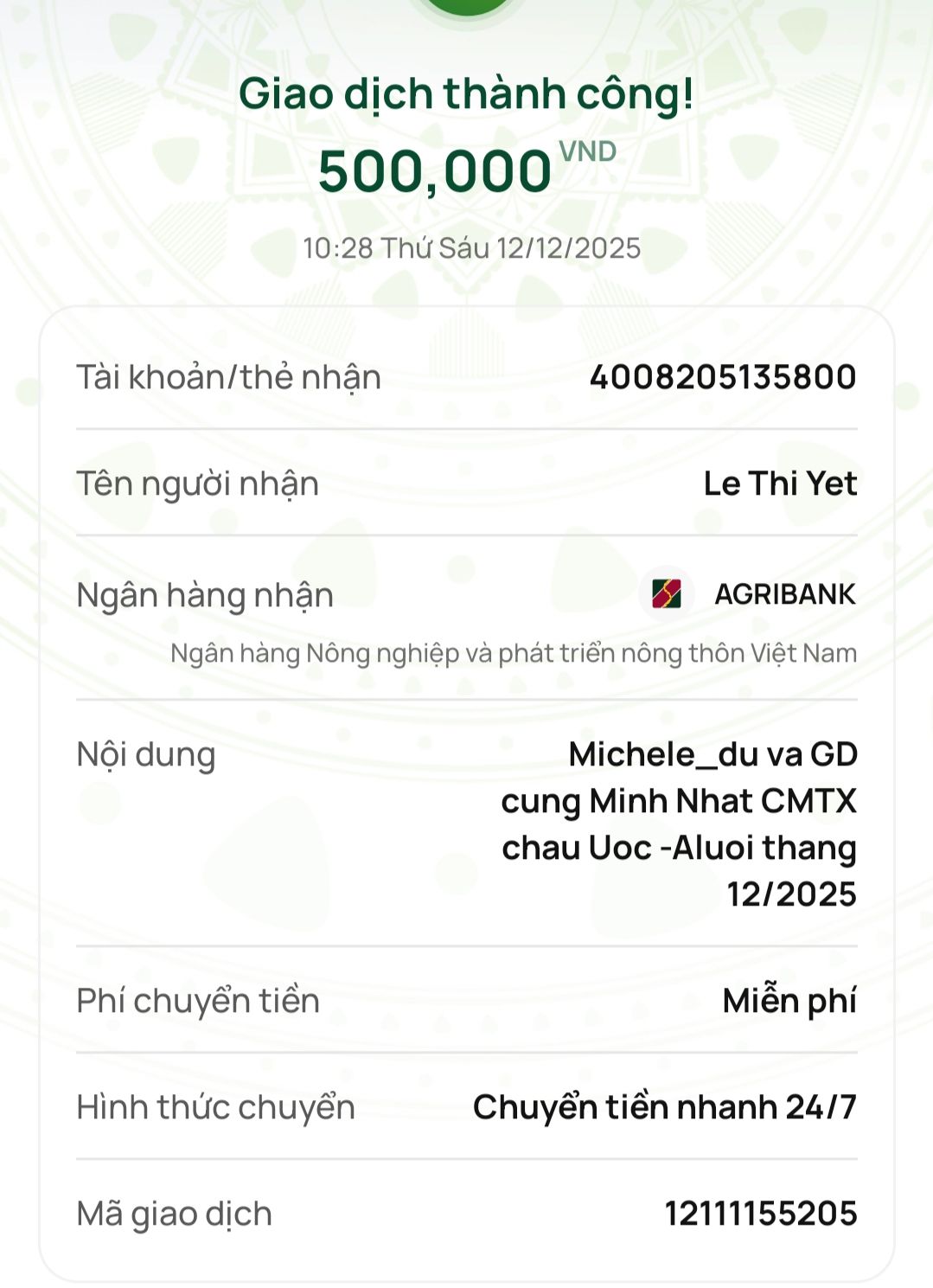 Michele_du và Gia đình cùng Minh Nhật đã chuyển 500,000₫ tiền CMTX cháu Ước tháng 12/202
