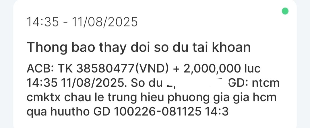 @trangvitgioi : Em xuất quỹ NTCM chuyển tới @35_Nguyễn Hữu Thọ 2,000,000₫ tiền CMKTX cháu Tiến dùm nhé.
