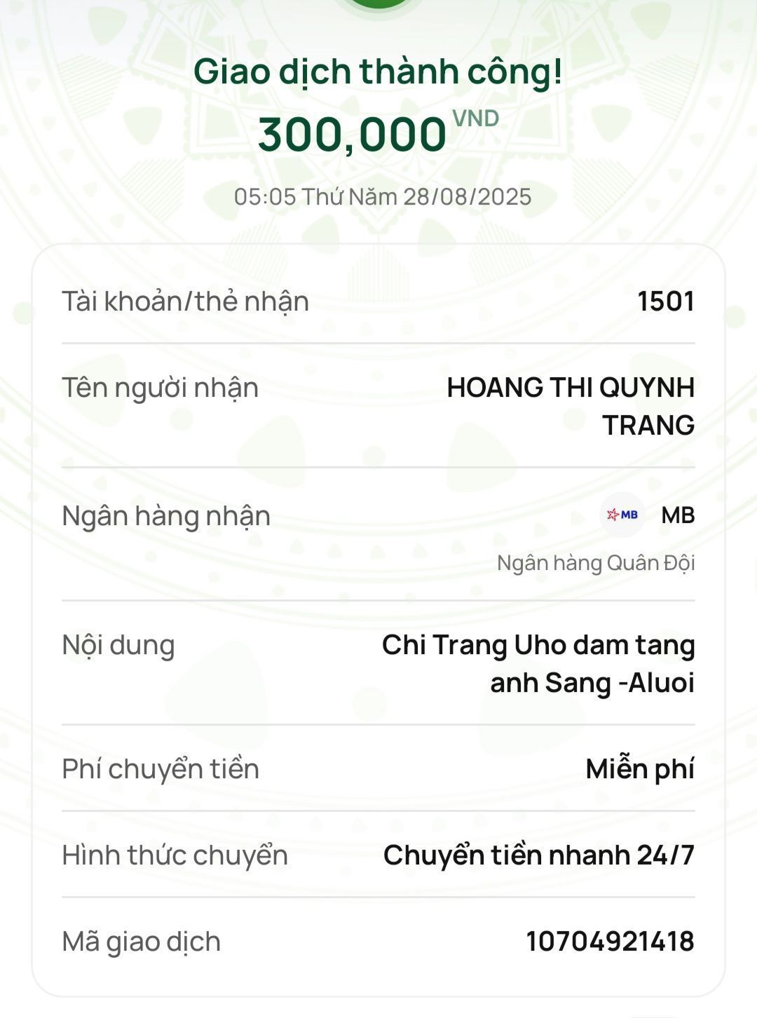 Quỹ đã thực hiện, nhờ các bạn nhắn Tâm kiểm tra tài khoản giúp nhé. Cầu Mong anh Sang về nơi an lành.
