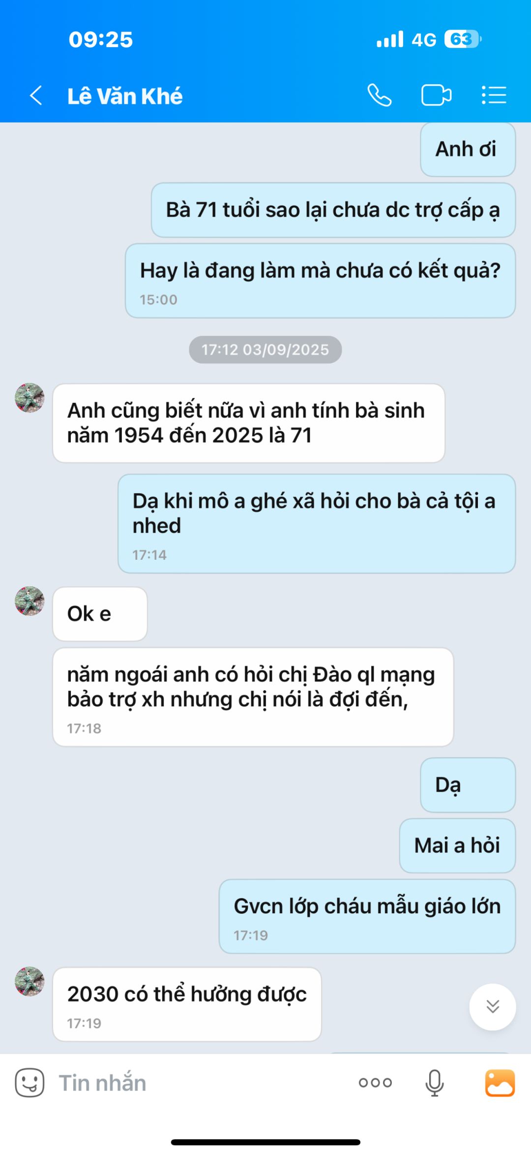 Nhờ bác @banbe6x  liên hệ hàng xóm bà là anh Lê Văn Khé 0364175873 để hỏi và hỗ trợ thông tin giúp bà ạ