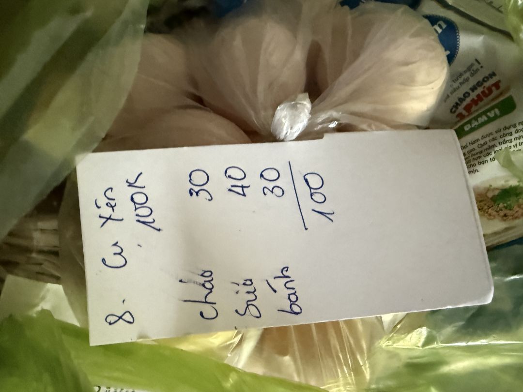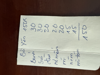 150. 000 đ nhu yếu phẩm, 100.000 đ trứng, 170.000 đ gạo,80.000 đ giấy vs