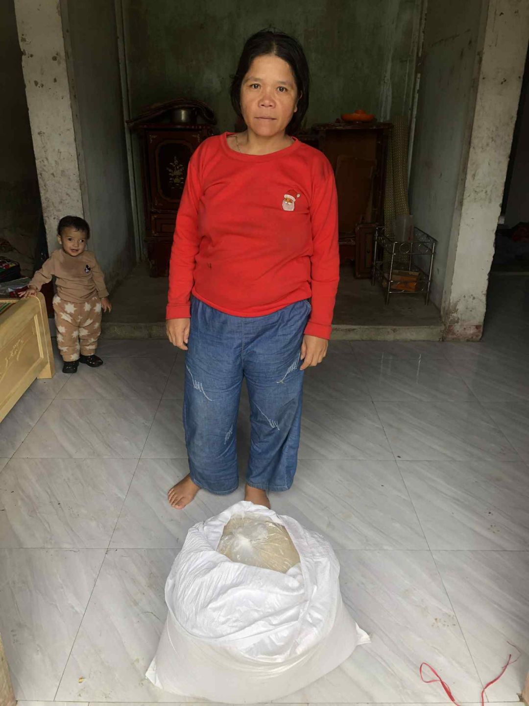 Hộ bà là hộ nghèo của xã. Cháu nhỏ không đi học, cháu lớn học lớp 2 nhưng bữa học bữa không vì ba đi làm xa không ai bảo ban . Vay ngân hàng để sửa nhà không có khả năng trả. Trong nhà không có tài sản nào đáng giá. Cái nhà phía sau không có cửa che chắn, mặc cho gió mùa đông giá lạnh lùa vào. Các cháu đang tuổi ăn tuổi học mà có bữa học bữa nghỉ vì đói ăn. Cái nghèo cứ đeo đẳng mãi.