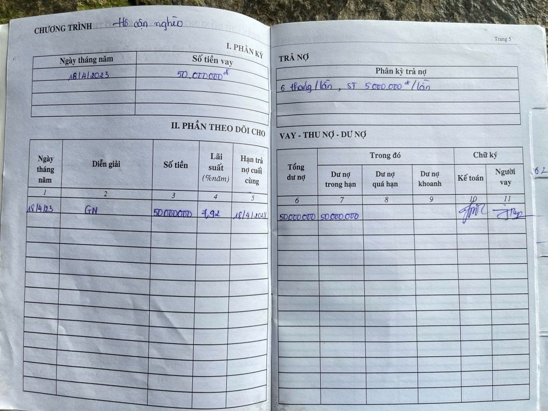 Năm 2024, gia đình sửa lại nhà ở nên đã cắm lương trợ cấp của bà nội với số tiền là 15.000.000 đồng. Mỗi tháng trả ở ngoài là: 1.639.000 đồng (cả gốc và lãi) trong đó tính lãi 2,5%/tháng. Ngoài ra, để sửa nhà và hỗ trợ cho cháu Hồ Thị Lan Anh đi học Đại học, anh Hiệp có vay thêm Ngân hàng chính sách với số tiền là 92.000.000 đồng. Mỗi tháng phải trả cả gốc và lãi từ 1.000.000 đồng trở lên.