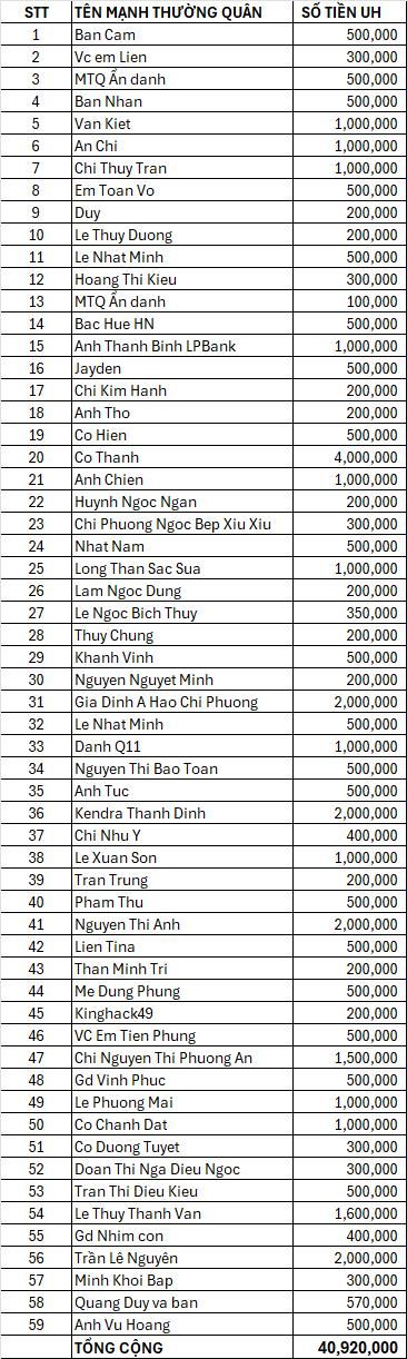 Ủng hộ tiền mặt đã nhận : 40,920,000 vnđ