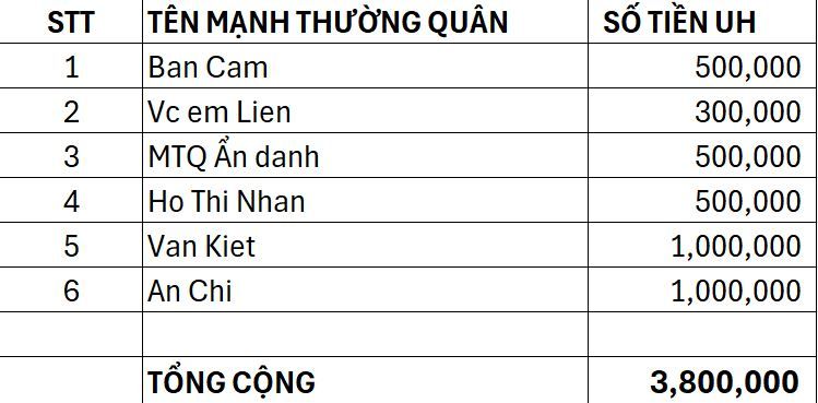 - Cô Thanh (QUận 6) ủng hộ cho chương trình 4,000,000đ
