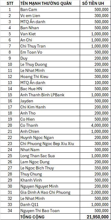- Cô Hiền (Bình Dương) ủng hộ cho chương trình 500,000đ