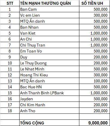 - Cô Hiền (Bình Dương) ủng hộ cho chương trình 500,000đ