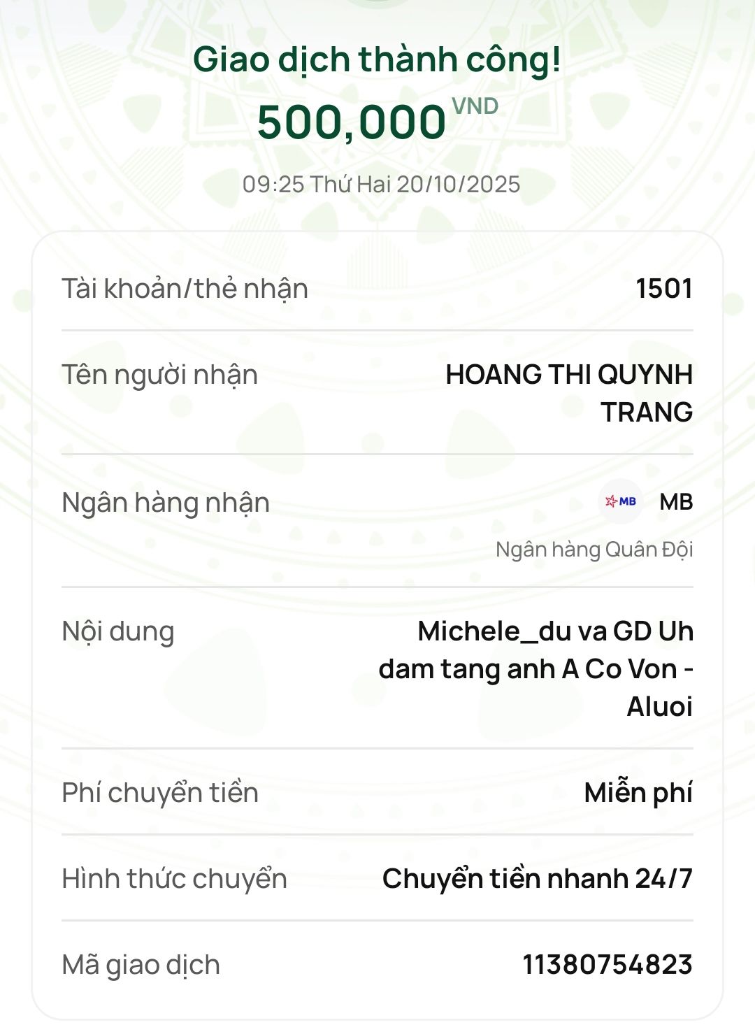 Michele_du và Gia đình ủng hộ đám tang của anh Vơn 500,000₫