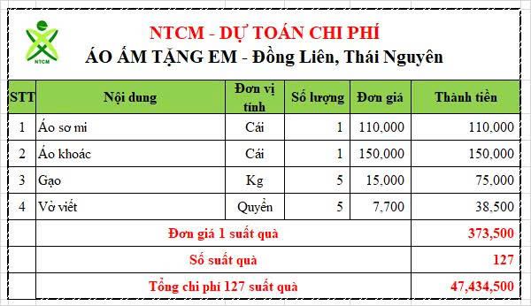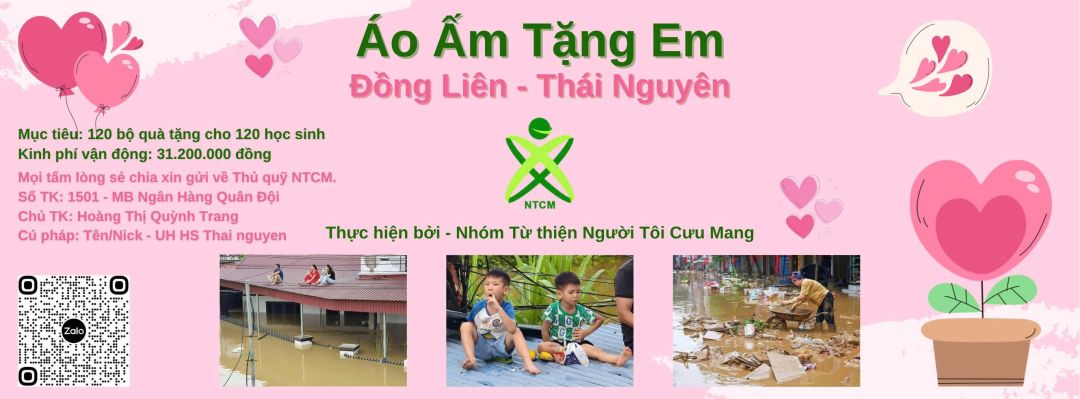 BQT vả nhóm NTCM Hà Nội nhận thấy đây là việc làm thiết thực nhằm chia sẻ với các gia đình trên Thái Nguyên phần nào gánh nặng sau lũ, chúng tôi đồng thuận thực hiện chương trình “Áo Ấm Tặng Em – THCS Đồng Liên, Thái Nguyên”