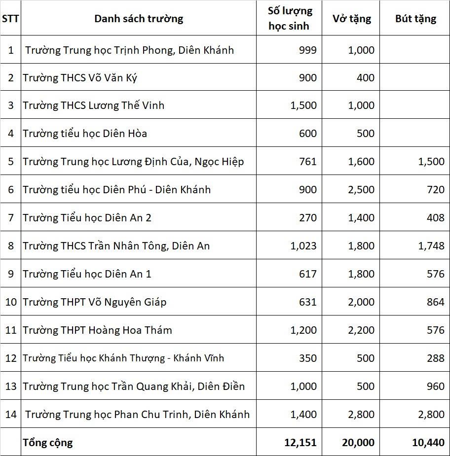 - Tặng vở & bút các trường Khánh Hòa