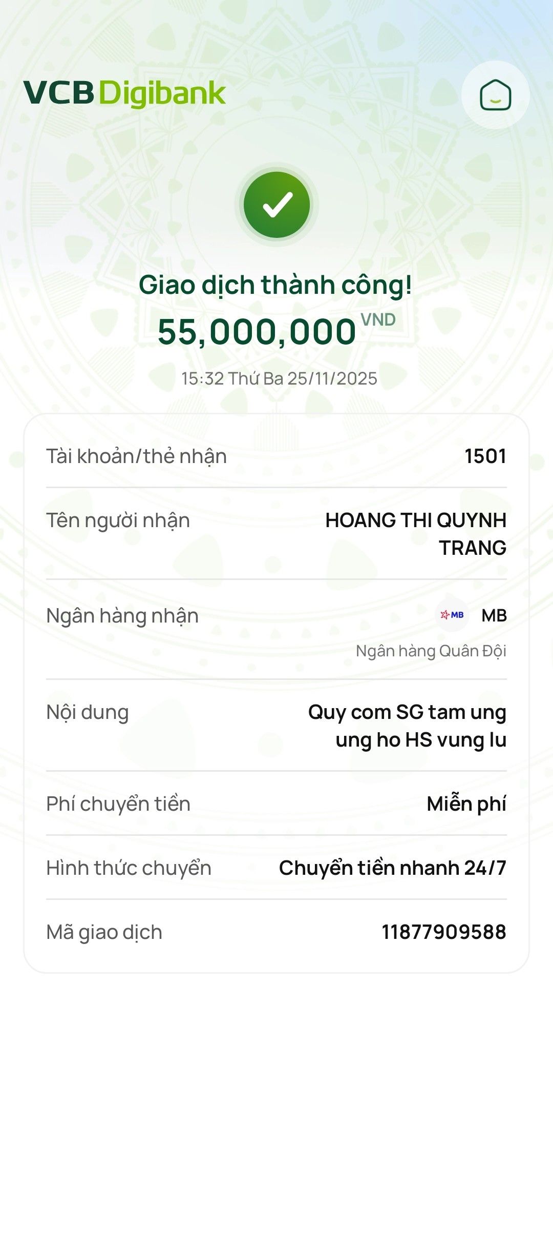Chị Trang ủng hộ chương trình 3,000,000₫.