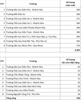 Trao đổi với các hiệu trường thì Vịt phân bổ lại số lượng chăn phù hợp nhu cầu từng trường vào thời điểm trao tặng, tổng số lượng chăn vẫn 2.900 cái chia cho nhiều trường hơn so với đề xuất ban đầu (hình ảnh bên dưới). Các Thầy Cô gửi lời cảm ơn Nhóm mình rất nhiều, có cả thư cảm ơn của trường tiểu học Hòa Trị 2, thật ấm áp hình ảnh các em nhỏ vui sướng tấm chăn ấm trên tay.