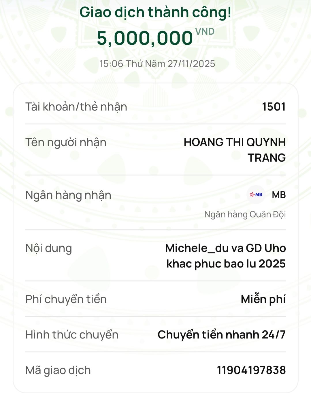 Tieuhuongduong đã chuyển vào quỹ.