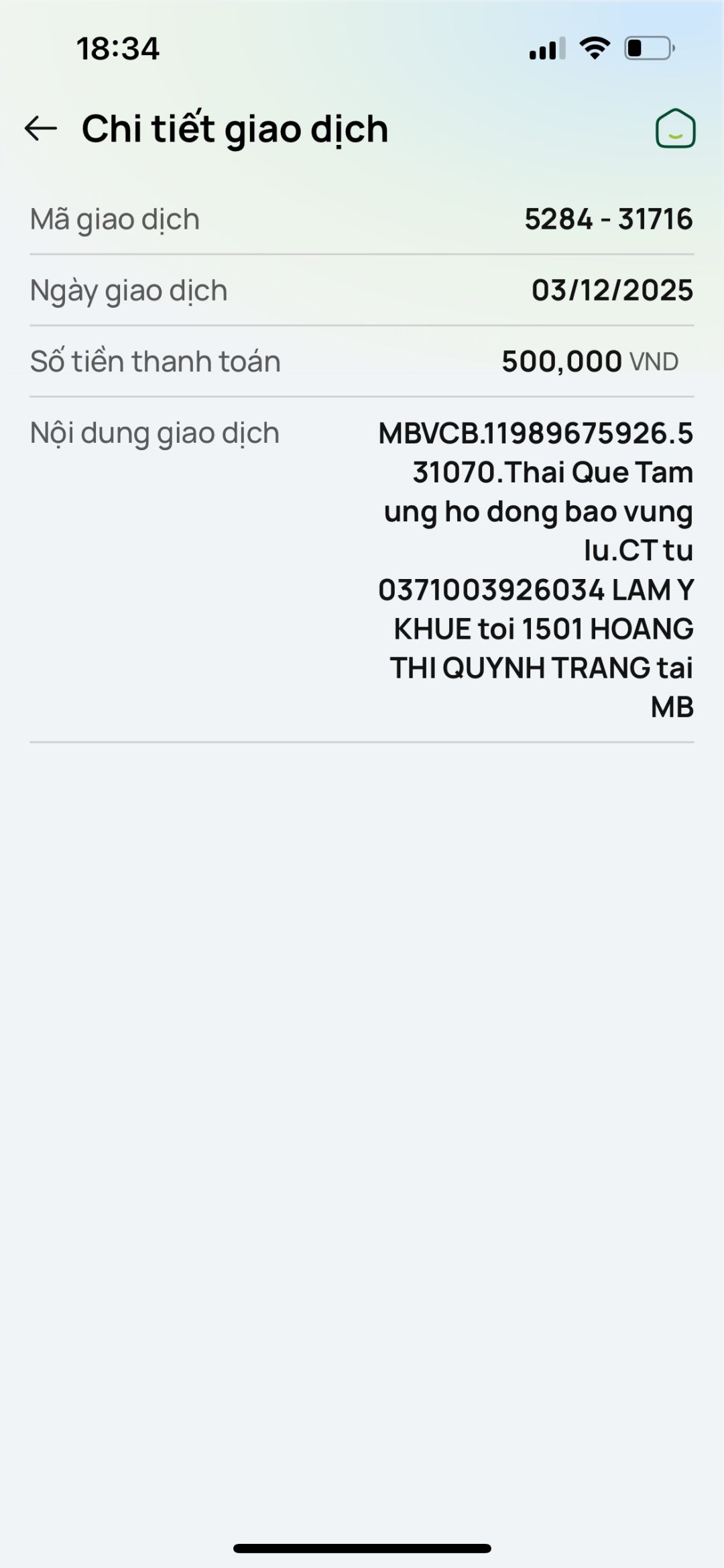 Chị Thái Quế Tâm ủng hộ 500,000đ