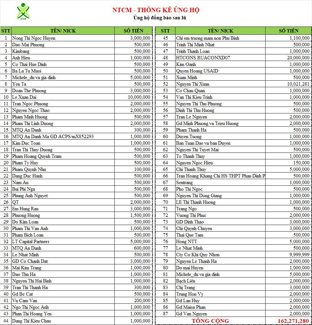 Loannguyen cập nhập chi phí và ủng hộ của chương trình :  Ba miền chung tay khắc phục sau lũ 2025 (Trừ Nha Trang)