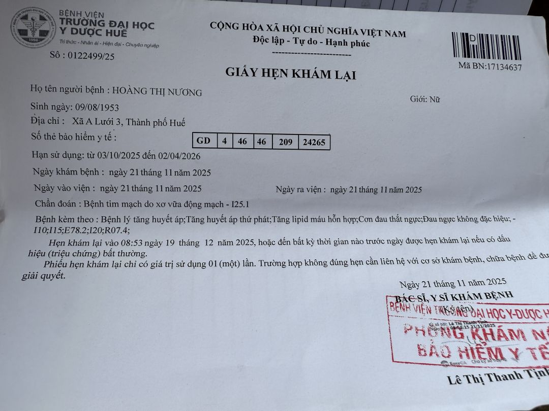 Mệ Hoàng Thị Thu 62 tuổi, đau khớp hơn 9 tháng nay ở nhà không thu nhập. ( không có bệnh án vì tự đi châm cứu ở ngoài).