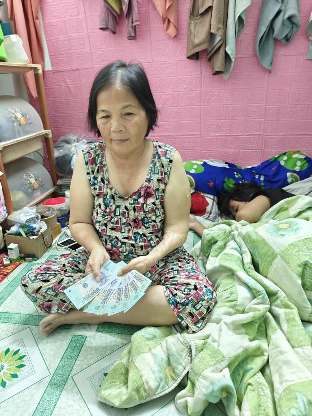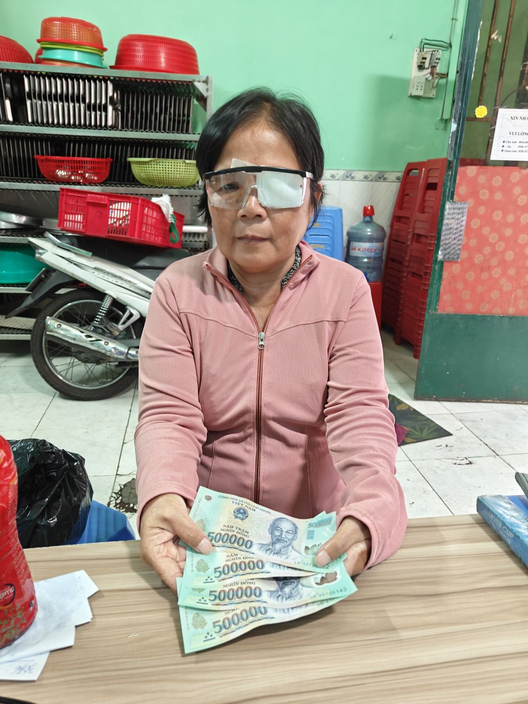 Đợt vừa rồi, cô Lan phải mổ mắt do di chứng bị xe tông trước đó ảnh hưởng, nên letuantu đã ứng đưa trước cho cô khoản tiền MTQ hỗ trợ cho gia đình.