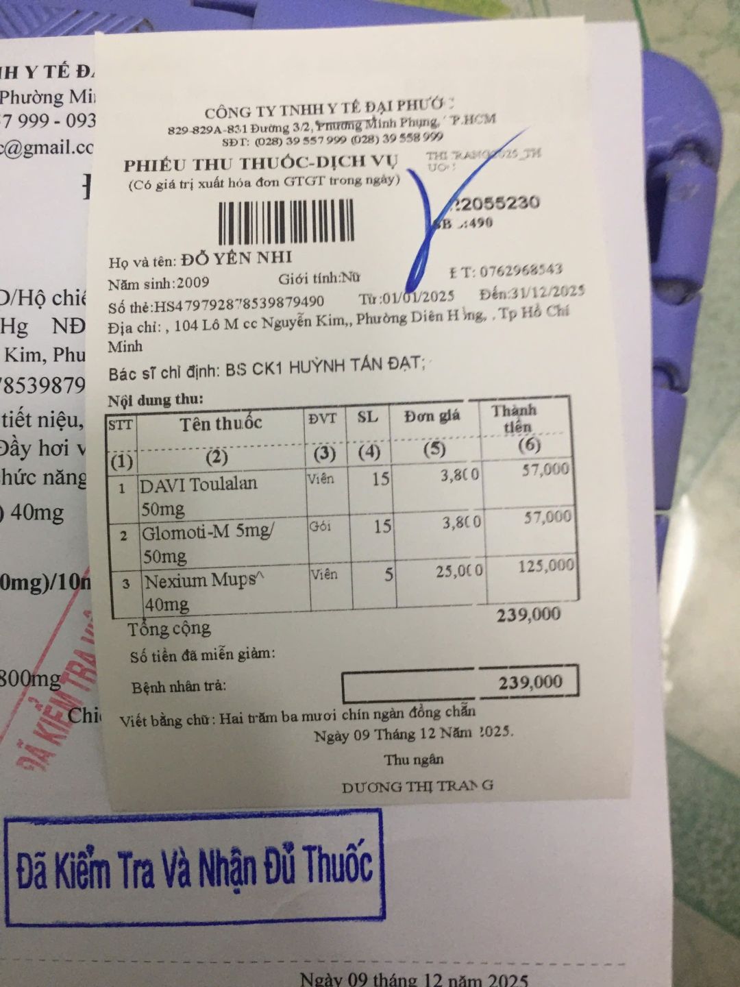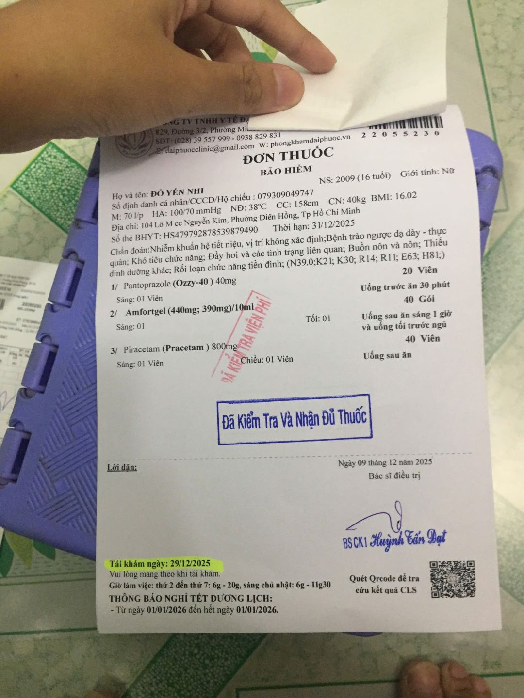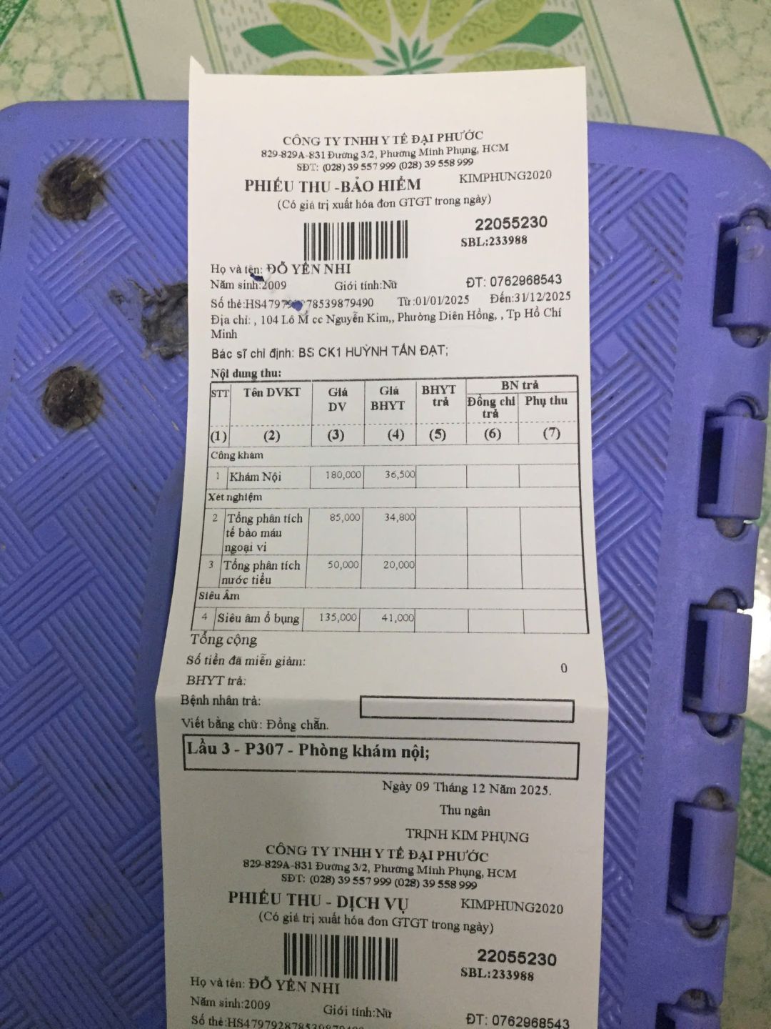 Các giấy tờ hôm đi khám bệnh của bé Nhi.