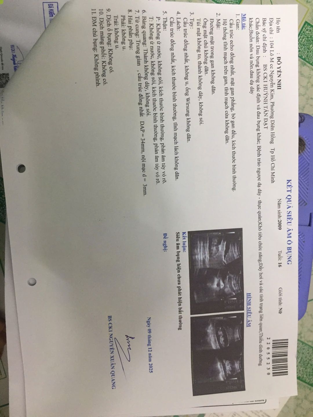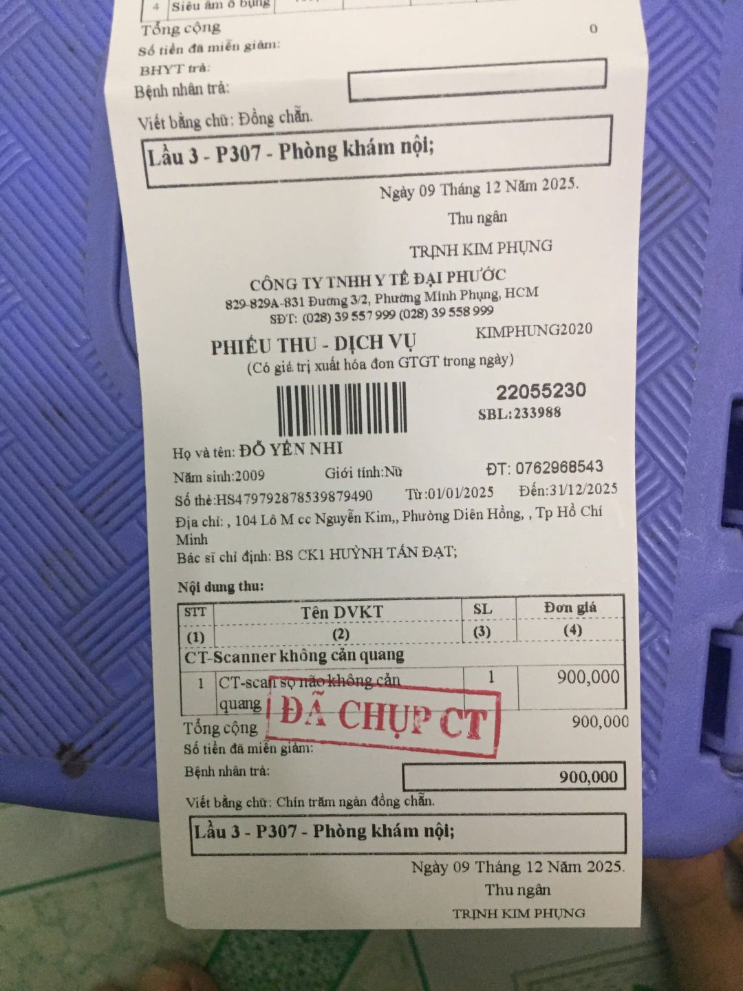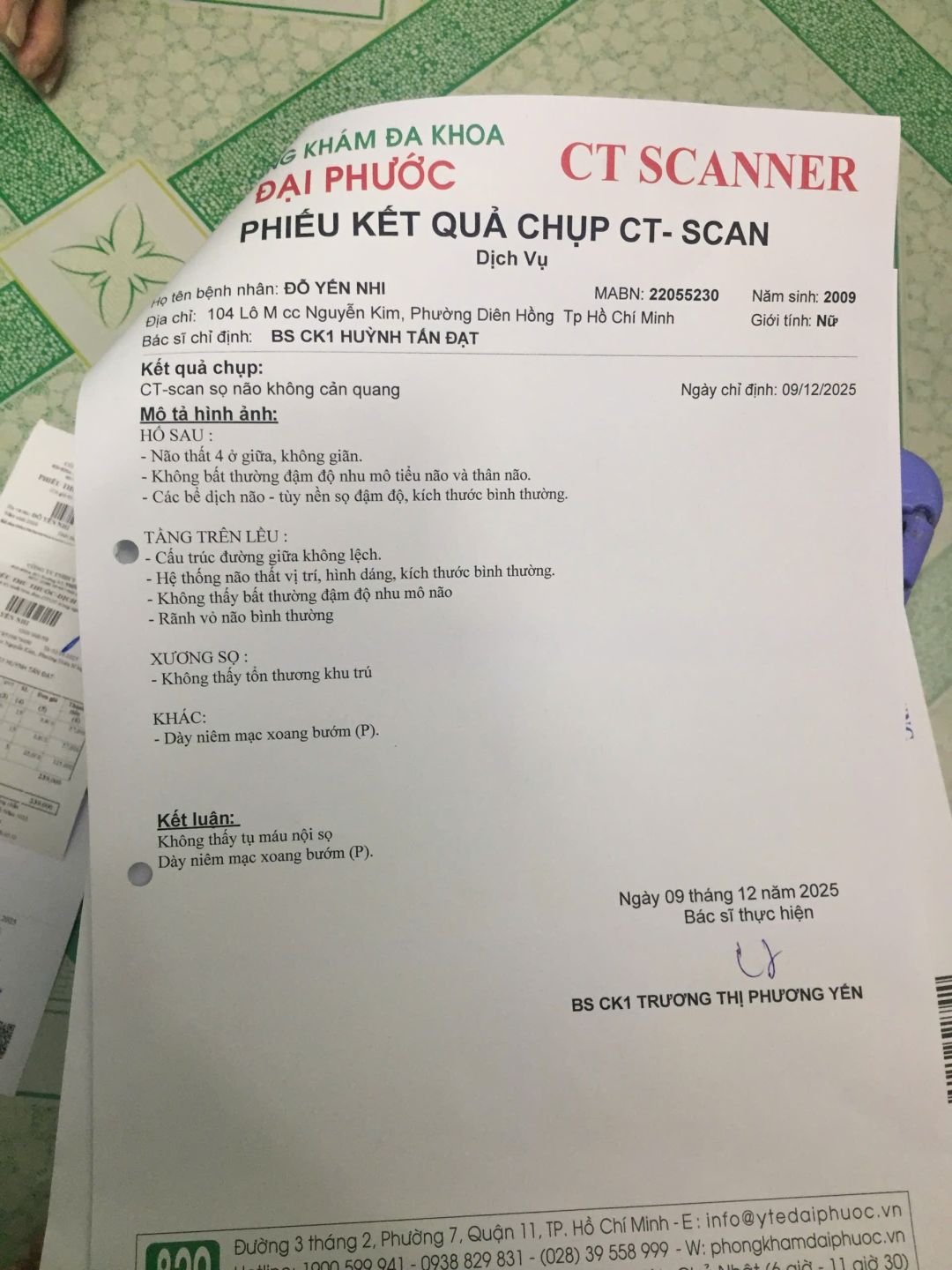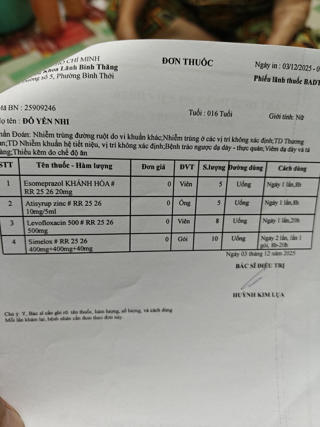 Các giấy tờ hôm đi khám bệnh của bé Nhi.