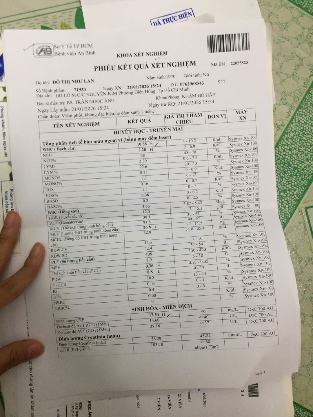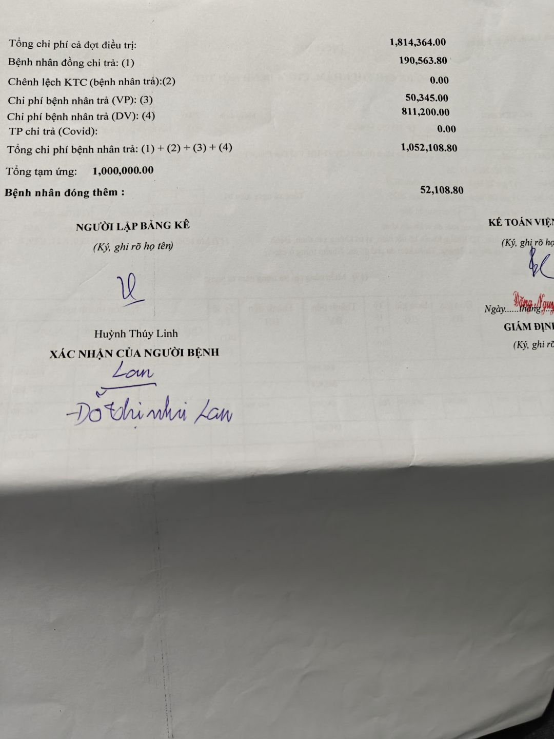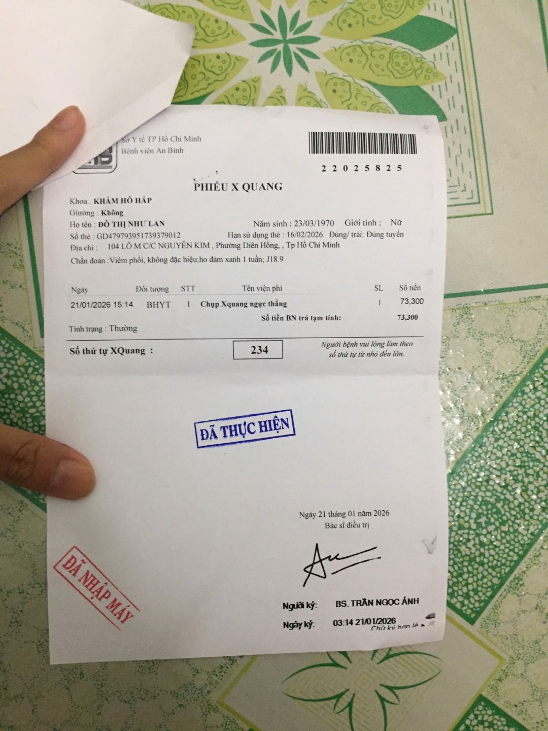 Kết quả chẩn đoán cô bị viêm phổi, tiền khám bệnh, thuốc men & tiền xe đi lại khoảng 400k, số tiền còn lại letuantu có nói cô Lan giữ lại dùng khi cần gấp.
