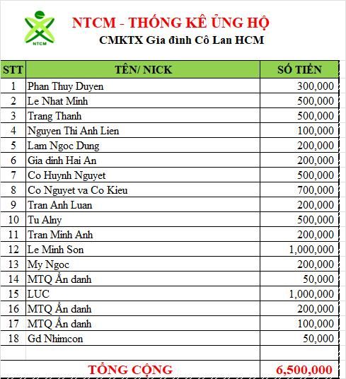 Cập nhật ủng hộ cho gia đình cô Lan đến thời điểm hiện tại.