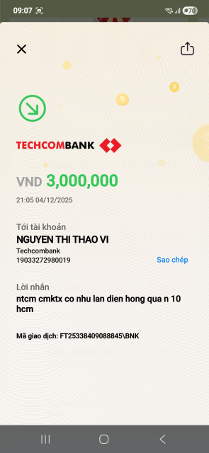 Hôm nay, letuantu đã ứng trước 3,000,000đ để chuyển cho cô.
