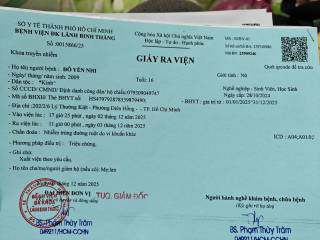 Vừa rồi bé Nhi có nhập viện để cấp cứu nhưng chỉ mới khám và làm cấp cứu, xét nghiệm sơ bộ, phía bệnh viện có yêu cầu nằm viện để xét nghiệm chuyên sâu nhằm xác định chính xác bệnh của Nhi, nhưng do chi phí nằm viện quá cao gần (900.000đ/ngày) và cần tạm ứng trước vì không đủ chi phí chi trả nên cô Lan đã đưa bé trở về nhà sau 2 ngày nằm viện.( Đã sử dụng hết 2tr tạm ứng từ anh Tú).