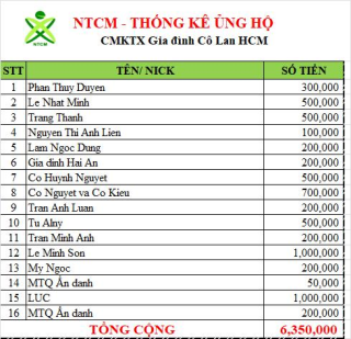 Cập nhật ủng hộ cho gia đình cô Lan đến thời điểm hiện tại.