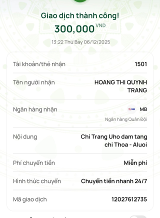 Loannguyen cập nhật ủng hộ MTTT chị Thoa đến hiện tại nhé.