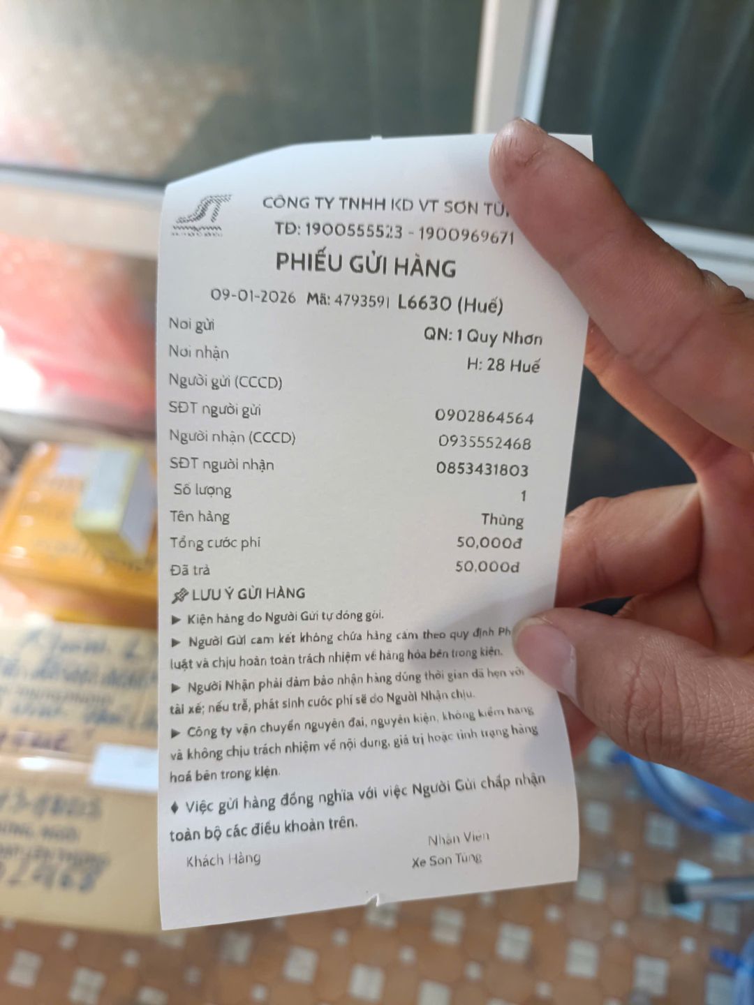 Hàng đã được tập kết ở Huế.Nhân lực như đã nêu: