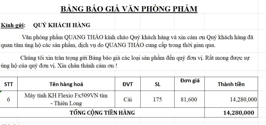 Tổng tiền mặt cần để mua sắm và chạy chương trình : 26.006.945đ