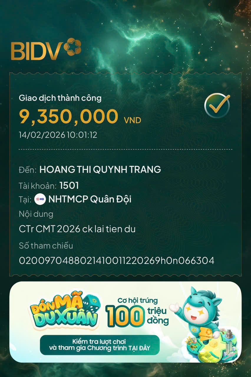 2. CK về TK diễn đàn 1501 - Hoàng Thị Quỳnh Trang MB Bank - Cú pháp Tên  _UH CMX HN