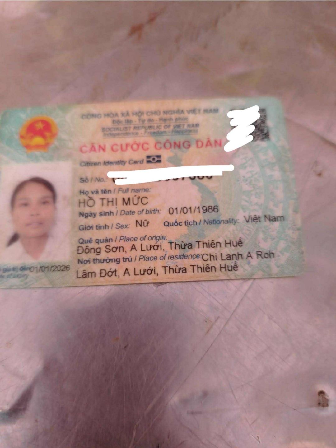 Vợ anh 40 tuổi, làm thuê , có 3 con,  đứa đầu 19 tuổi, đứa thứ hai 15 tuổi ,đứa thứ ba 4 tuổi. Gia đình thường trú tại Thôn Chi Lành ARo , Xã A Lưới 4 , TP Huế.