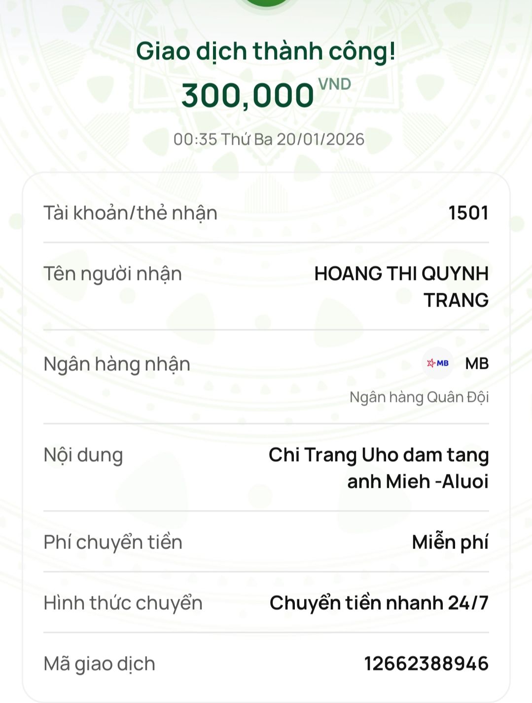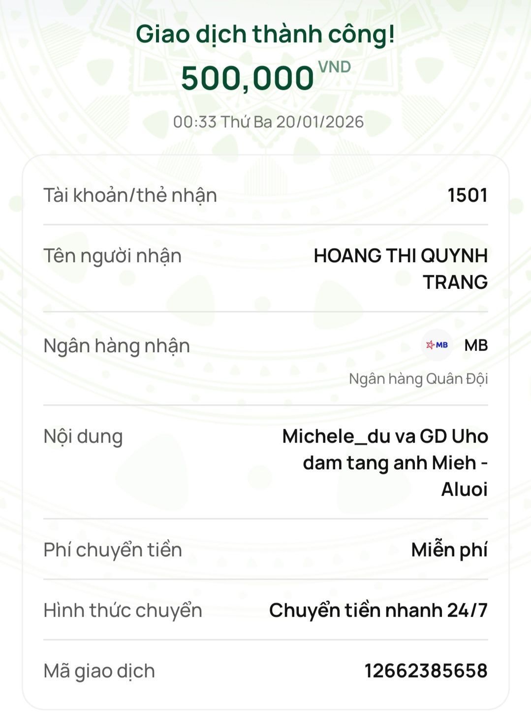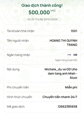 Michele_du và Gia đình ủng hộ đám tang anh Miêh 500,000₫.