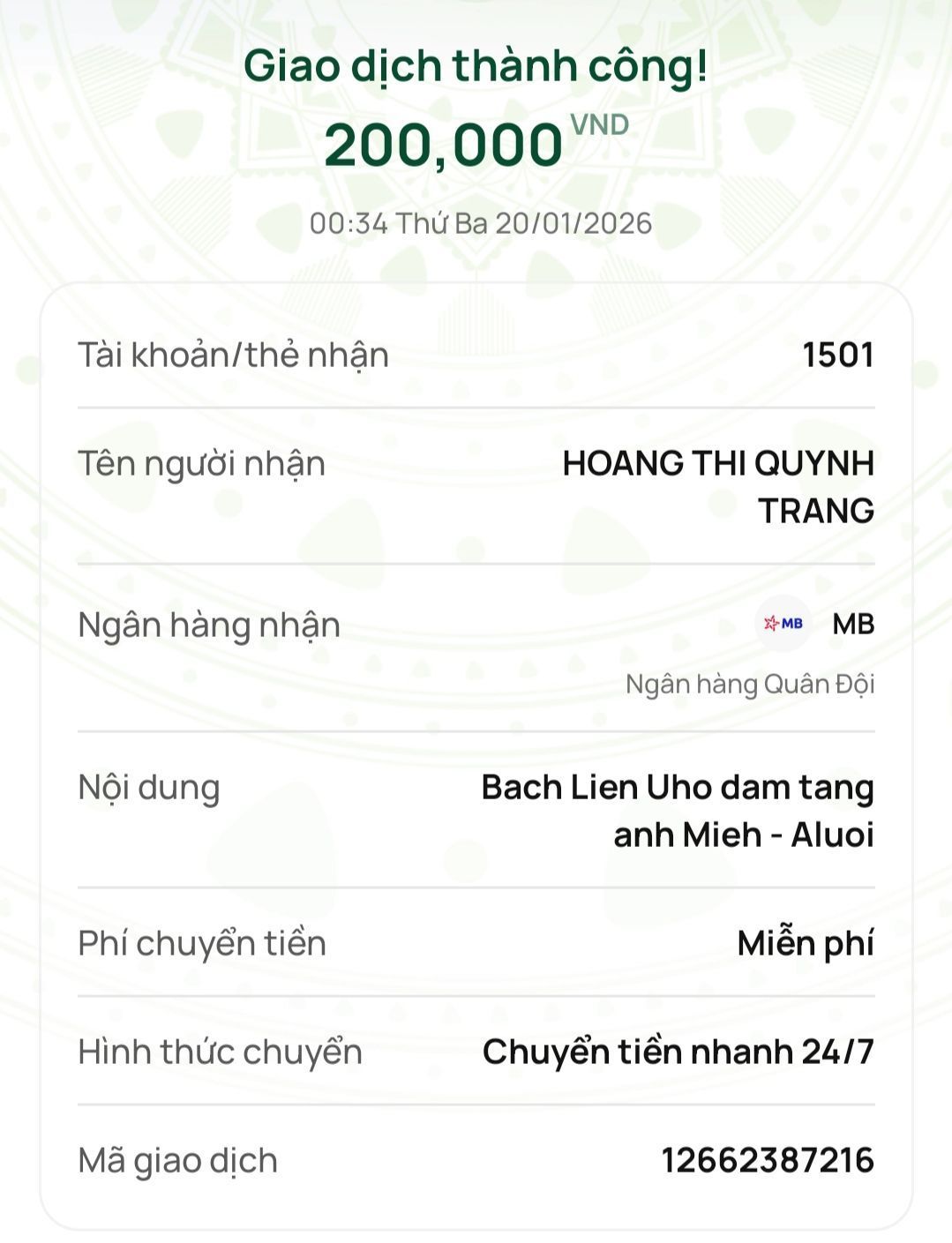 @trangvitgioi : Em chuyển nốt 6,270,000₫ tới @Wendy Duong để nhờ bạn ấy gửi đến Gia đình anh Miêh dùm nhé.