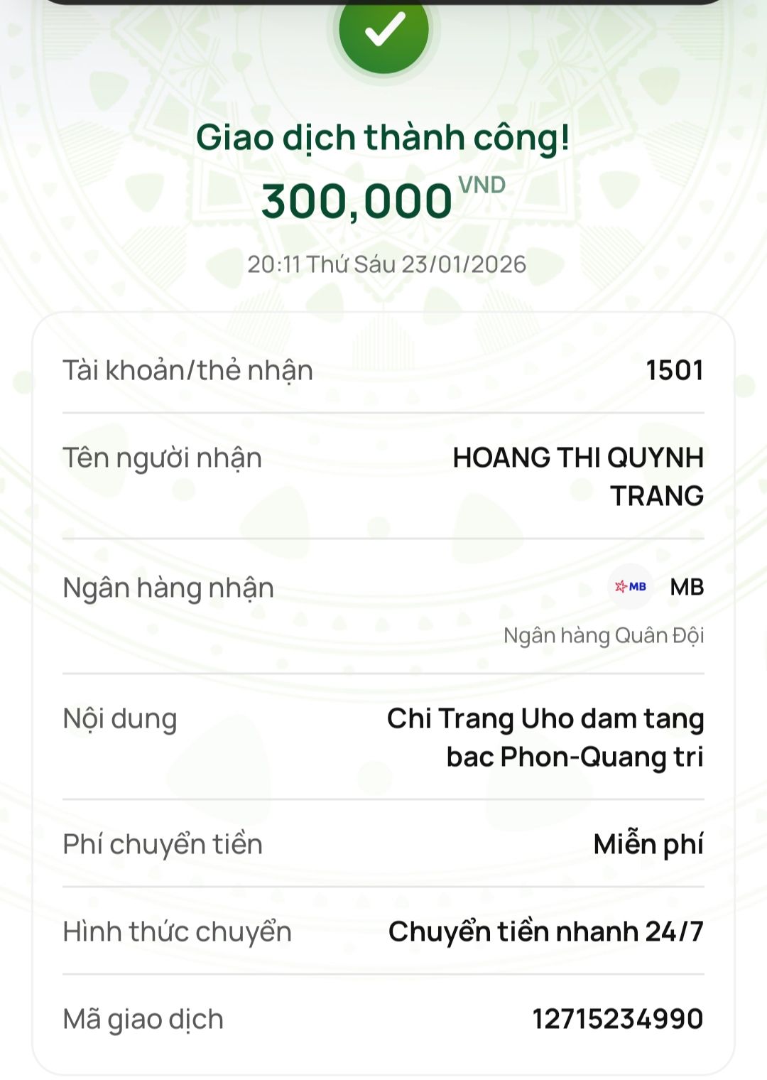 Sáng thứ bảy ngày 24/01/2026 lúc 7h30 là sẽ đưa bà Hồ Thị Phơn về nơi an nghỉ cuối cùng.