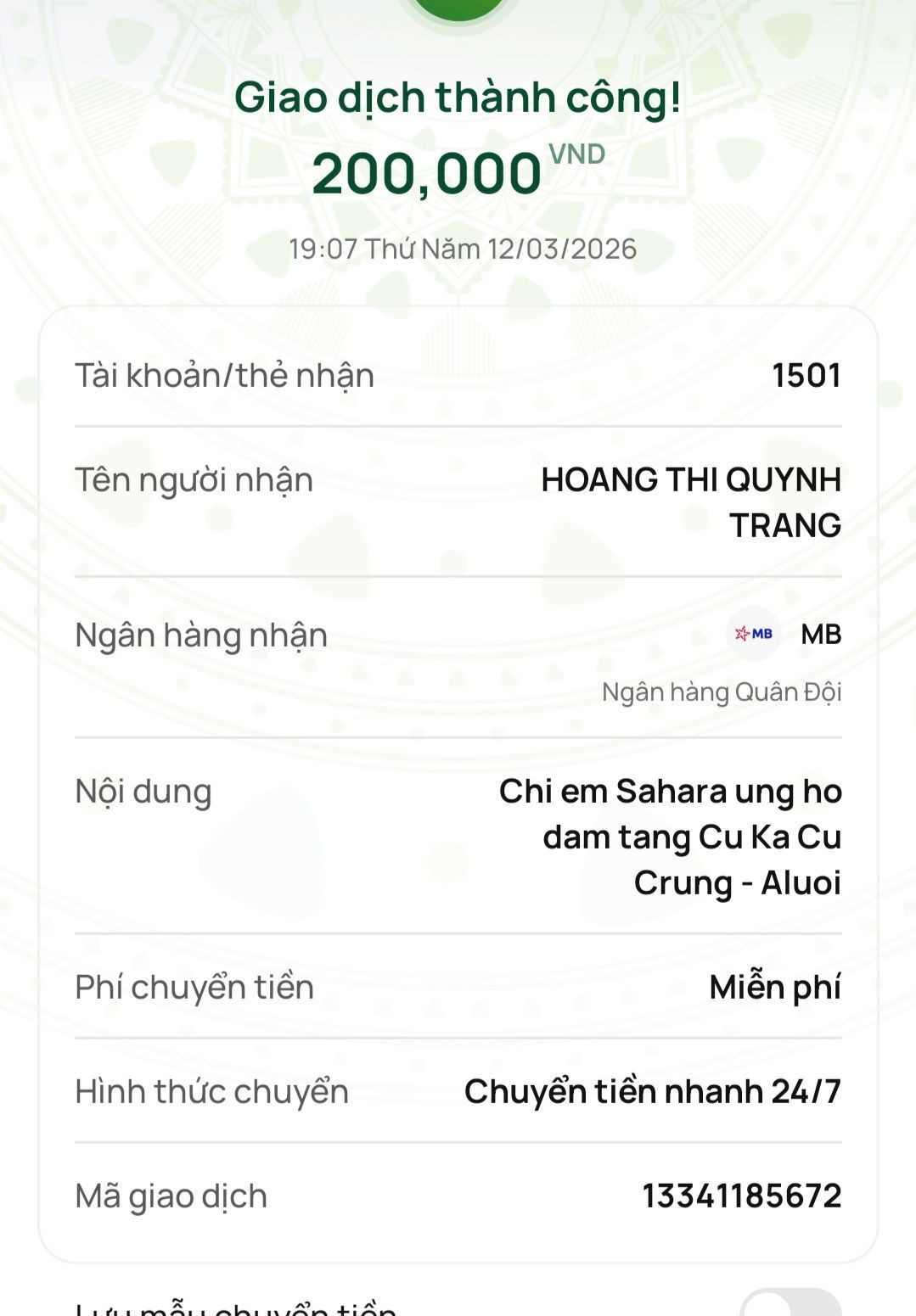 Chị em @sahara  ủng hộ đám tang của Cụ Kả Cu Crung 200,000₫.